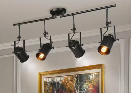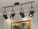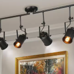 Adjustable black track lighting offers a versatile and modern solution for illuminating art galleries. Its